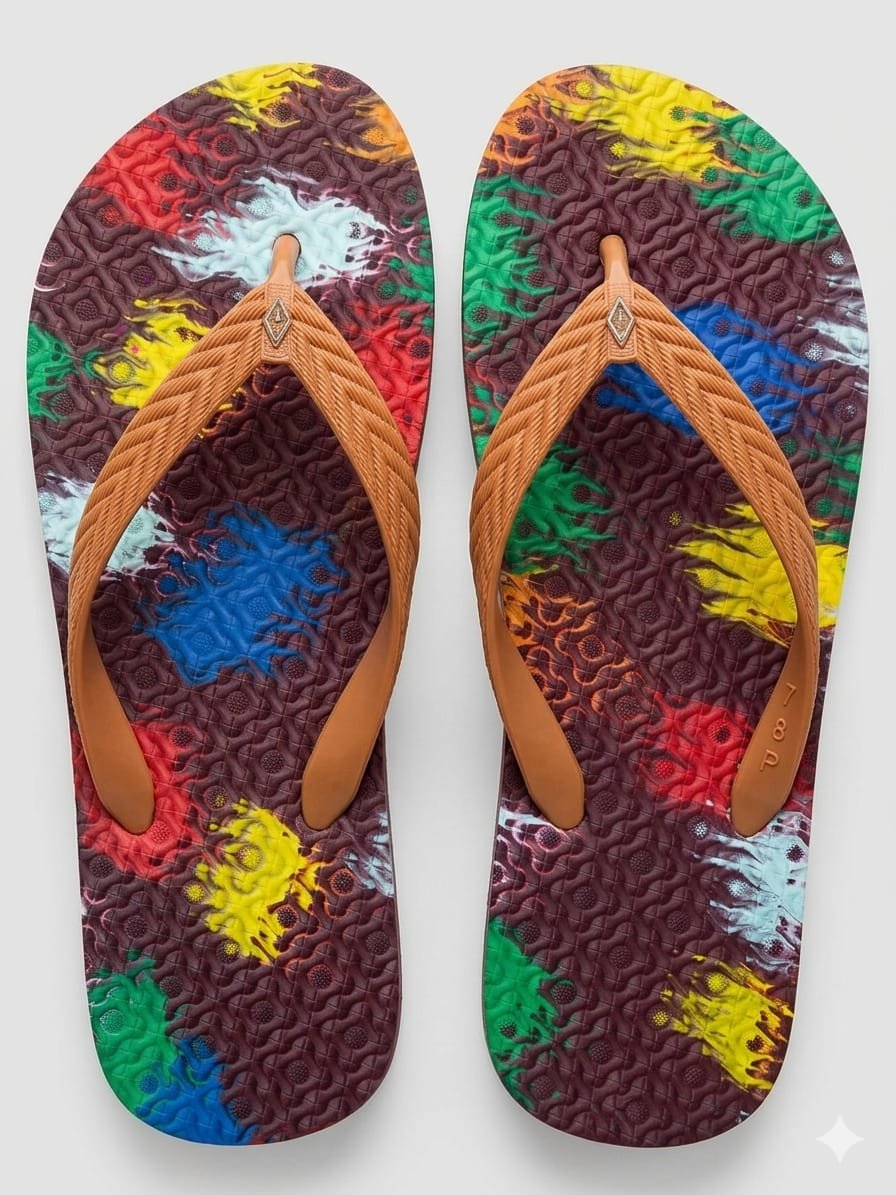 casual footwear with these vibrant, multi-color printed flip-flops from TZ Smart. Designed for both comfort and durability, these slippers feature a unique artistic pattern that stands out. Whether youβre heading to the beach or relaxing at home, these lightweight flip-flops provide the perfect grip and long-lasting wear.